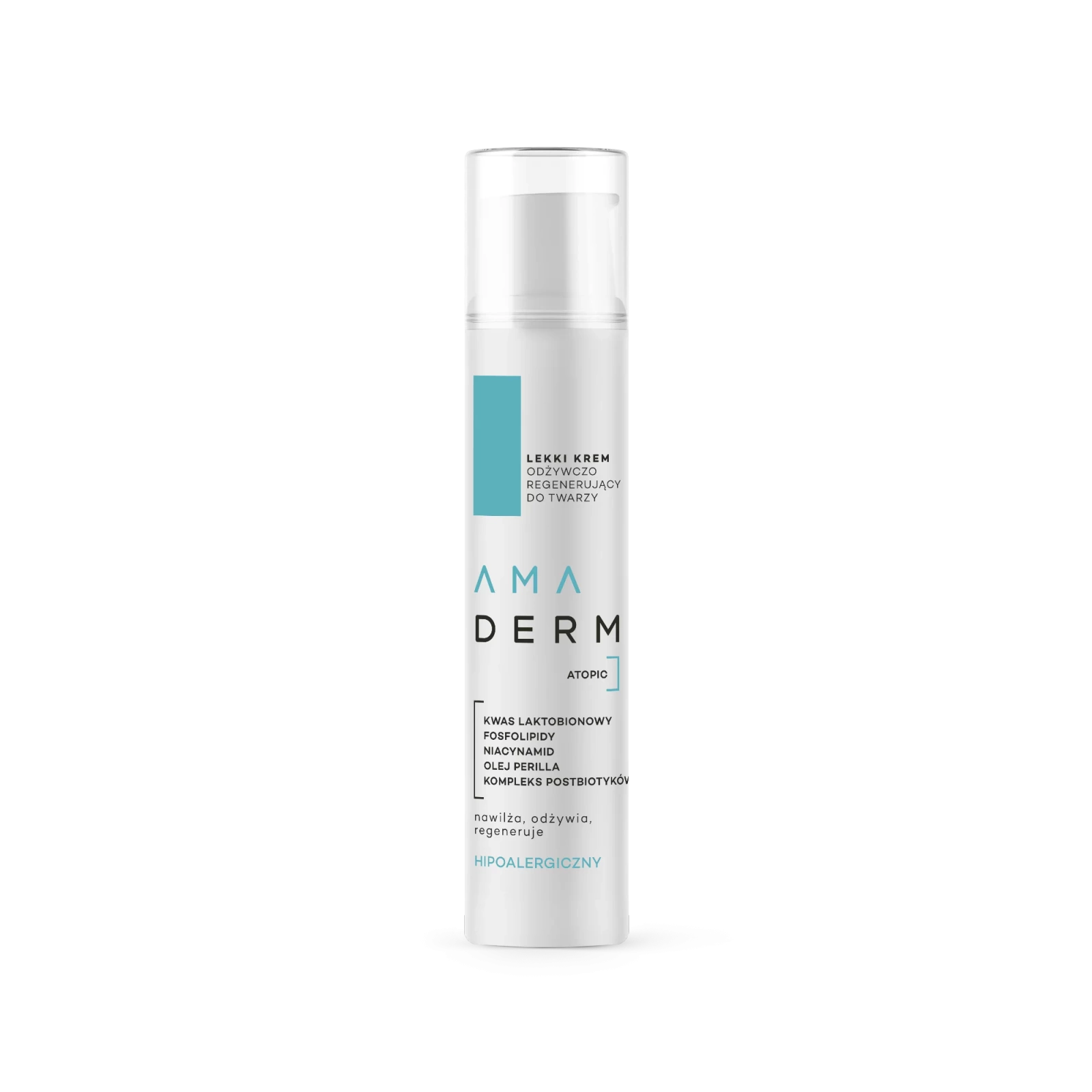 AMADERM ATOPIC Lekki Krem odżywczo-regenerujący do twarzy, 50 ml – ukojenie, nawilżenie i odbudowa skóry atopowej | KRÓTKA DATA WAŻNOŚCI: 30.09.2024R.