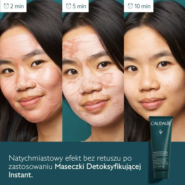 - Caudalie Maseczka Detoksyfikująca Instant to szybkie rozwiązanie, które oczyszcza, zwęża pory i przywraca cerze świeżość oraz blask.