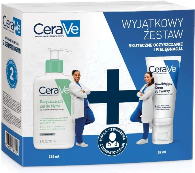 CeraVe Zestaw – żel do mycia twarzy, 236 ml + krem nawilżający, 52 ml