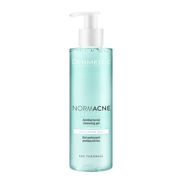 Dermedic Normacne Antibacterial Gel 200 ml to specjalistyczny preparat do codziennego oczyszczania cery tłustej, mieszanej i trądzikowej. Skutecznie usuwa zanieczyszczenia, nadmiar sebum i makijaż, jednocześnie działając antybakteryjnie i łagodząco. Regularne stosowanie żelu pomaga zmniejszyć niedoskonałości, odblokować pory i ograniczyć powstawanie nowych zmian trądzikowych.