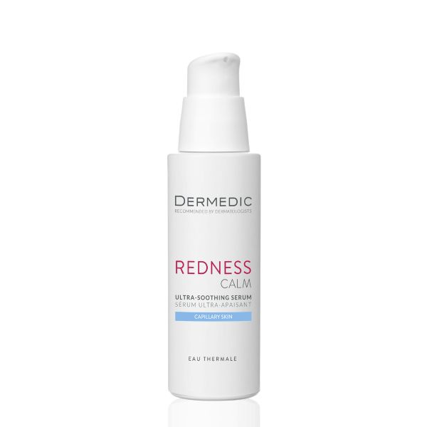 Dermedic Redness Calm Serum ultrałagodzące to intensywnie kojący kosmetyk dermatologiczny stworzony specjalnie dla skóry wrażliwej, skłonnej do zaczerwienień, podrażnień i pękających naczynek. Serum o lekkiej, nietłustej konsystencji przynosi natychmiastowe ukojenie, zmniejsza uczucie pieczenia i zaczerwienienia, a jednocześnie wzmacnia naczynia krwionośne, poprawiając komfort i wygląd cery. Regularne stosowanie Dermedic Redness Calm Serum ultrałagodzącego widocznie redukuje rumień i przywraca skórze równowagę.
