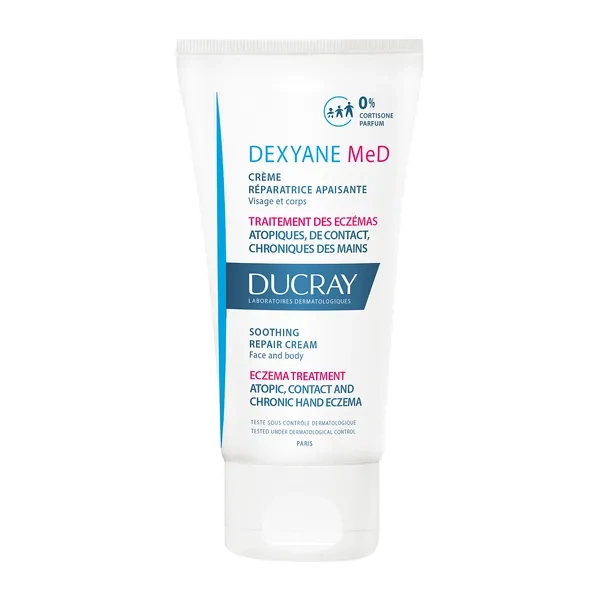 Ducray Dexyane Med w wersji 30 ml to specjalistyczny krem przeznaczony do pielęgnacji skóry bardzo suchej, podrażnionej oraz z egzemą atopową i kontaktową. Dzięki formule opracowanej jako wyrób medyczny, łagodzi świąd, redukuje podrażnienia i wspiera procesy naprawcze naskórka. Poręczne, mniejsze opakowanie jest idealne do stosowania w podróży lub w ciągu dnia, gdy potrzebna jest szybka ulga.