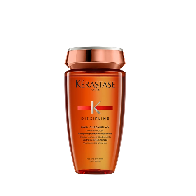 Szampon Kérastase Discipline Oléo-Relax Bain 250 ml został stworzony specjalnie dla włosów suchych, grubych, puszących się lub trudnych do ujarzmienia. Formuła odpowiada na potrzeby osób, które cierpią z powodu niesfornych włosów, elektryzowania się lub utraty płynności w ruchu fryzury.