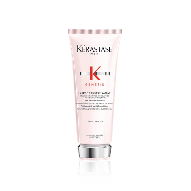 W codziennej pielęgnacji warto łączyć odżywkę Kérastase Genesis Fondant Renforçateur 200 ml z szamponem i maską z tej samej linii — dla pełnej synergii działania.