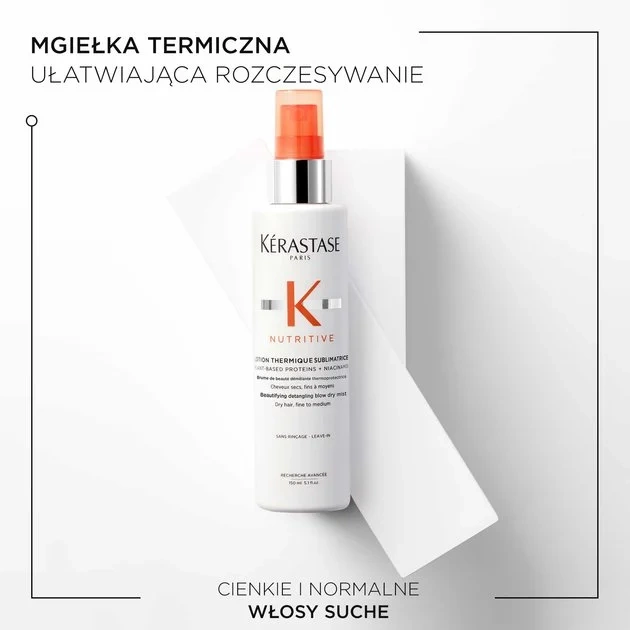 Odżywka bez spłukiwania Kérastase Nutritive Lotion Thermique Sublimatrice została stworzona z myślą o włosach suchych, cienkich lub normalnych, które wymagają dodatkowego nawilżenia, ułatwionego rozczesywania oraz ochrony przed wysoką temperaturą.