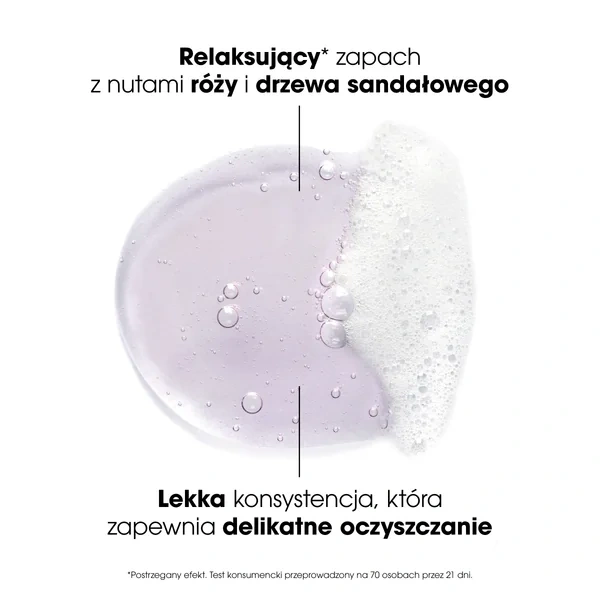 Delikatna, kremowa piana i świeży, subtelny zapach o działaniu relaksującym.
