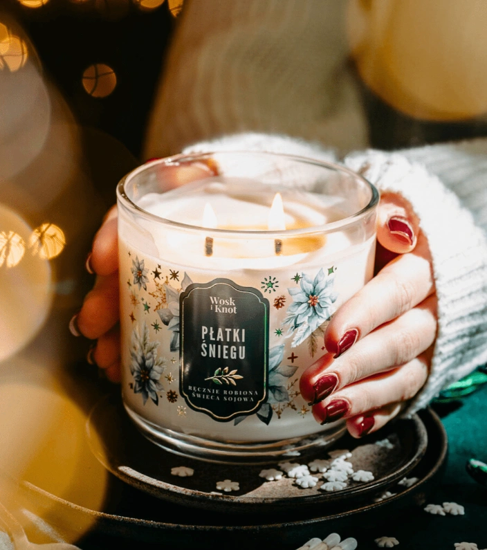 Płatki Śniegu świeca sojowa dwuknotowa – świece sojowe Wosk i Knot