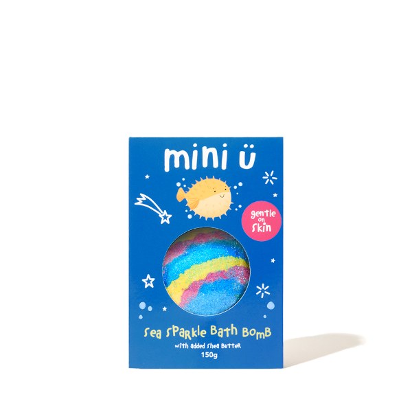 • Musująca kula do kąpieli dla dzieci, która tworzy błękitną, brokatową wodę i delikatnie pielęgnuje skórę dzięki masłu shea.