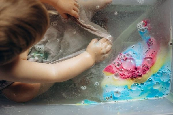 Zachęca dziecko do kąpieli poprzez zabawę i efekt WOW!