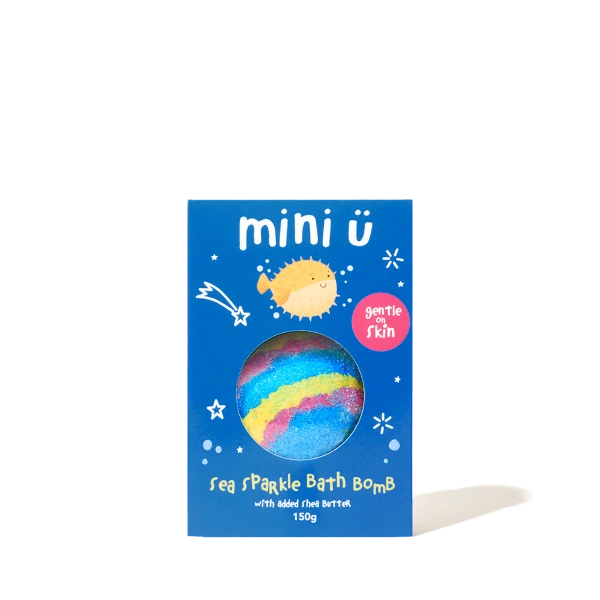 - Musująca kula do kąpieli dla dzieci, która tworzy błękitną, brokatową wodę i delikatnie pielęgnuje skórę dzięki masłu shea.