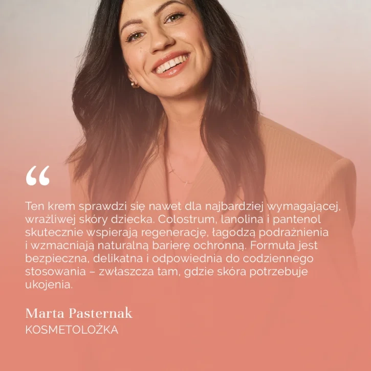 - Bezzapachowy krem ochronny dla dzieci z colostrum, pantenolem i naturalnymi konserwantami, łagodzi, regeneruje i wzmacnia wrażliwą skórę.