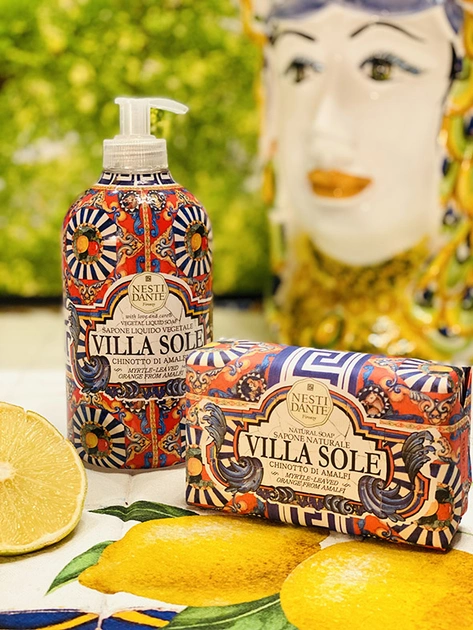- Nesti Dante Villa Sole Chinotto di Amalfi to ekskluzywne mydło w płynie, stworzone na bazie naturalnych składników roślinnych, które skutecznie oczyszcza dłonie, jednocześnie otulając je intensywnym, cytrusowo-aromatycznym zapachem owocu chinotto.
