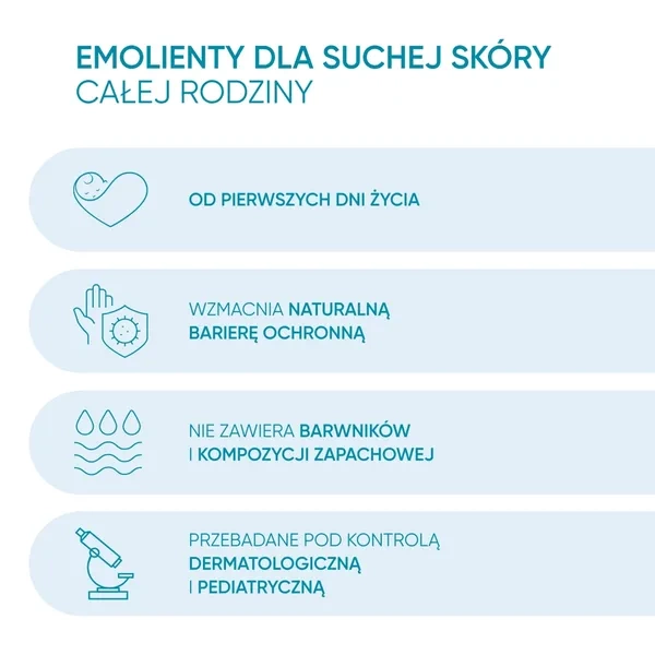 - Oillan Derm Emulsja do kąpieli intensywnie nawilża, natłuszcza i łagodzi suchą, wrażliwą oraz atopową skórę, zapewniając jej ochronę i komfort od pierwszego dnia życia.