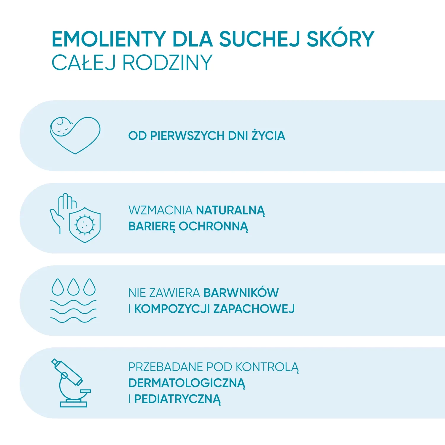 Dla dorosłych i dzieci powyżej 3. roku życia ze skórą suchą, wrażliwą, alergiczną lub atopową, wymagającą wyjątkowo delikatnego, a jednocześnie skutecznego oczyszczania.
