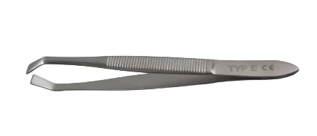 - Profesjonalna pęseta chirurgiczna wygięta typ E ze stali nierdzewnej do precyzyjnych zabiegów kosmetycznych i medycznych.