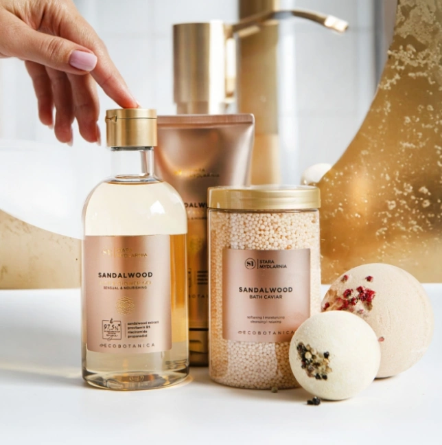Otul swoją skórę ciepłym, relaksującym aromatem drzewa sandałowego i zamień codzienną kąpiel w kojący rytuał pielęgnacyjny 🌿