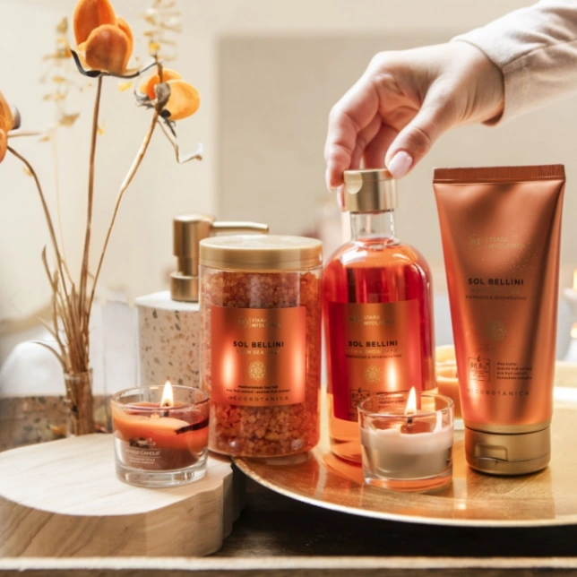 Sol Bellini żel do kąpieli i pod prysznic to delikatny kosmetyk do codziennej pielęgnacji ciała, oparty na łagodnych substancjach myjących pochodzenia kokosowego. Naturalna formuła o 97,2% składników pochodzenia naturalnego skutecznie oczyszcza skórę, nie naruszając jej bariery ochronnej. Dzięki bogactwu składników nawilżających i antyoksydacyjnych żel chroni przed przesuszeniem, pozostawiając skórę miękką, gładką i komfortową w dotyku.
