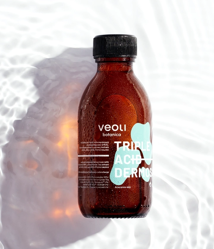 • Veoli Triple Acid – tonik do twarzy z kwasem migdałowym, glikolowym i laktobionowym. Skutecznie złuszcza, wygładza i rozjaśnia przebarwienia.