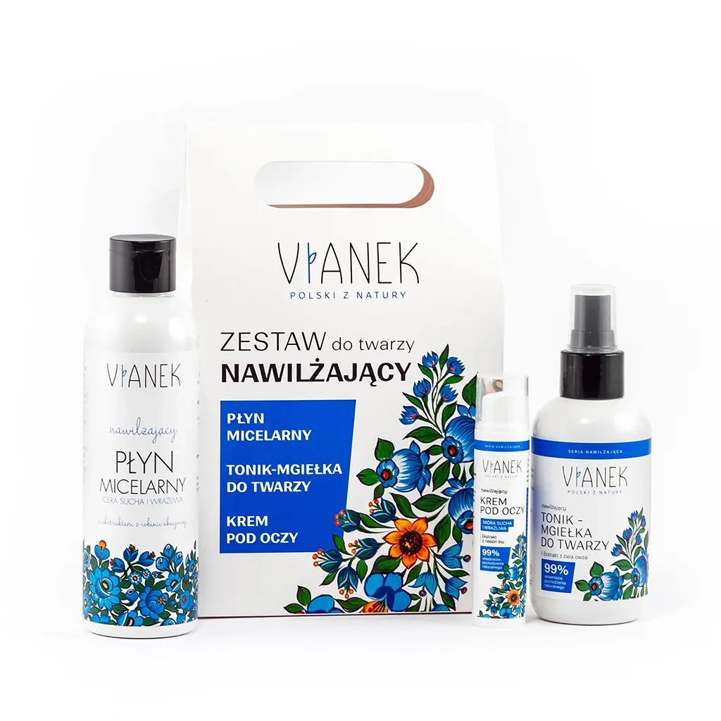 Vianek Zestaw Nawilżający do Twarzy – Płyn micelarny, tonik i krem pod oczy | KRÓTKA DATA: 01/2026r.