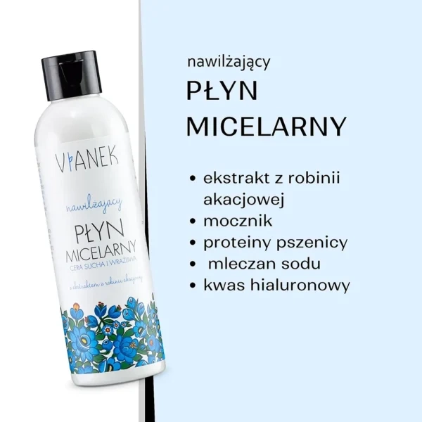 Zestaw Vianek Nawilżający to trzy starannie dobrane kosmetyki – płyn micelarny, tonik-mgiełka oraz krem pod oczy – które tworzą kompletną, delikatną i skuteczną rutynę pielęgnacyjną dla każdego typu skóry. Wszystkie produkty bazują na naturalnych ekstraktach roślinnych i odżywczych olejach, dzięki czemu zapewniają skórze nawilżenie, ukojenie, równowagę i świeży wygląd.