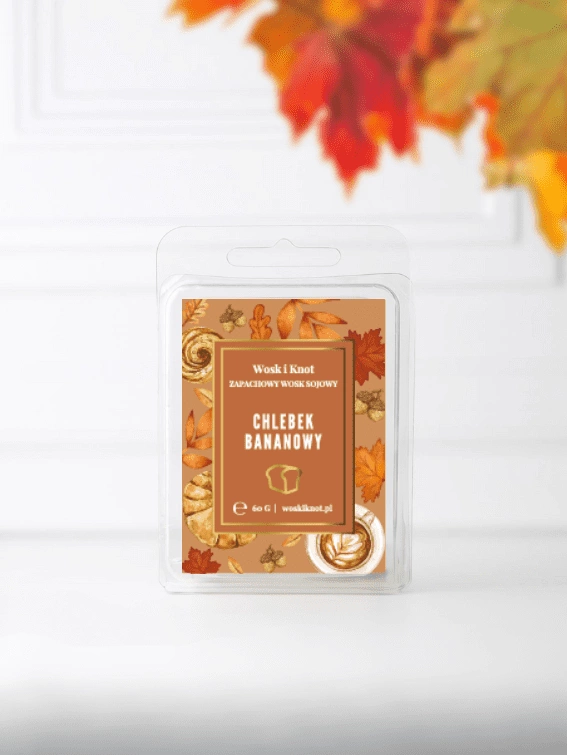 W&K Wosk zapachowy Chlebek Bananowy 60g to przepyszna, słodka kompozycja zapachowa, która łączy w sobie aromat świeżo upieczonego bananowego chlebka z nutami wanilii, karmelu i delikatnej przyprawy cynamonowej. W&K Wosk zapachowy Chlebek Bananowy 60g to doskonały wybór dla każdego, kto kocha zapach domowych wypieków, który sprawia, że wnętrze staje się ciepłe i przytulne. Idealny do stosowania w kominkach zapachowych oraz elektrycznych podgrzewaczach, W&K Wosk zapachowy Chlebek Bananowy 60g wypełnia przestrzeń pysznym, ciepłym zapachem, który poprawia nastrój i otula atmosferę.